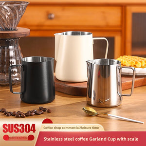 304Stainless Steel Pitcher Thick Frothing Pitcher with Scale White Teflon Hit Milk Frothing Cup Fancy