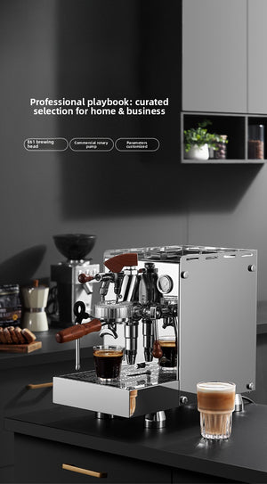 Stunning Design: The semi-automatic machine is beautifully crafted using premium stainless steel and vintage walnut wood, making it a standout piece in any kitchen or café setting.