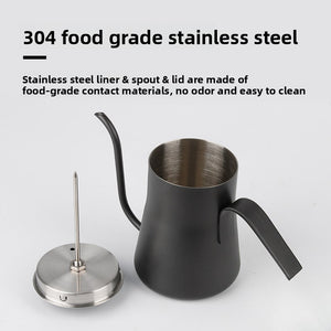 [Stainless Steel]: This pour-over coffee kettle is crafted from stainless steel, ensuring your health and safety while brewing. The brushed interior enhances its durability and longevity.