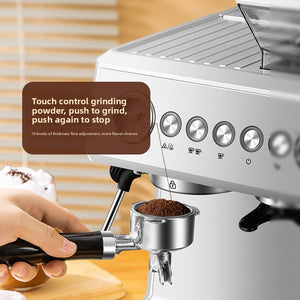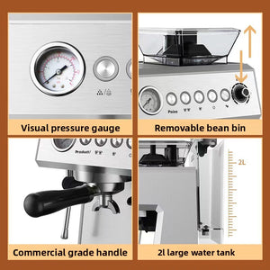 Espresso Coffee Maker with Adjustable Coffee Beans 7 ways to grind | 1 and 2 whisk system | Variable Bar | Lance with steam for whisking milk | Espresso