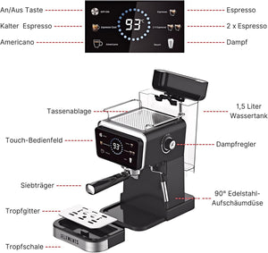 Espresso Machine with Filter Holder, Automatic Milk Frothing Function, Freddo Espresso Function, 20 Bar Espresso Machine with Milk Reservoir Hot and Cold Function