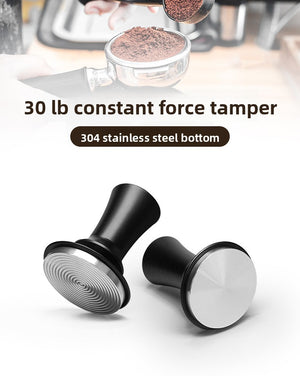 - 【Superior Construction】Crafted with an aluminum alloy handle for durability, our coffee espresso tamper features a 30-lb internal spring that ensures consistent pressure, resulting in balanced extraction. The flat balance gasket promotes stability during tamping, while the 304 stainless steel base provides long-lasting performance. Elevate your coffee brewing with our high-quality tamper. Elevate your coffee brewing with our tamper's superior construction.